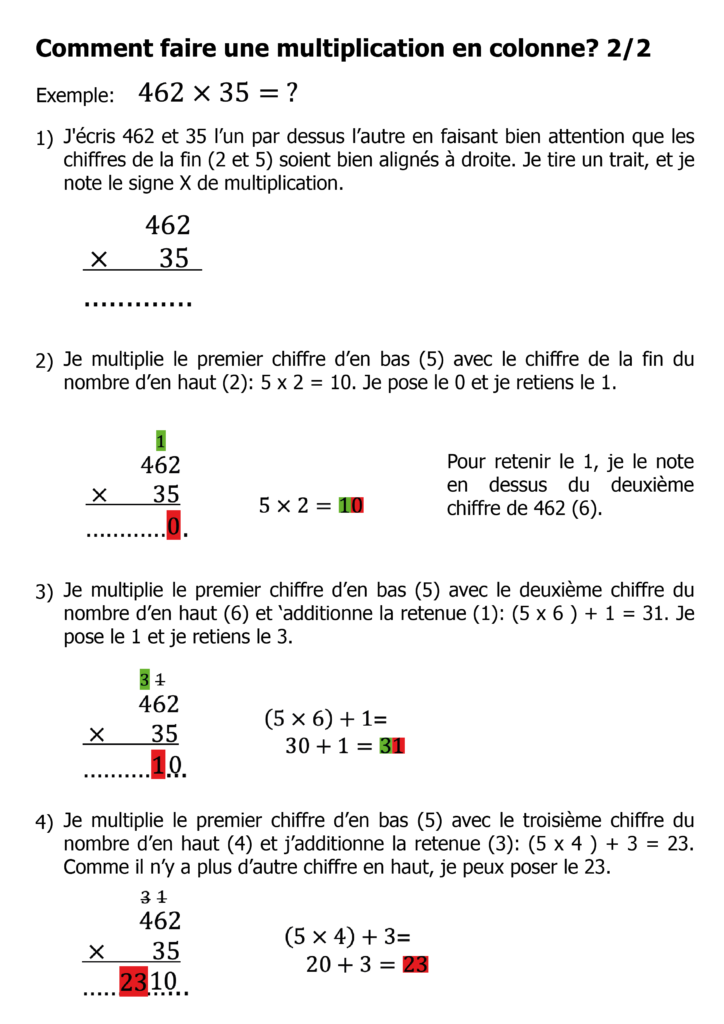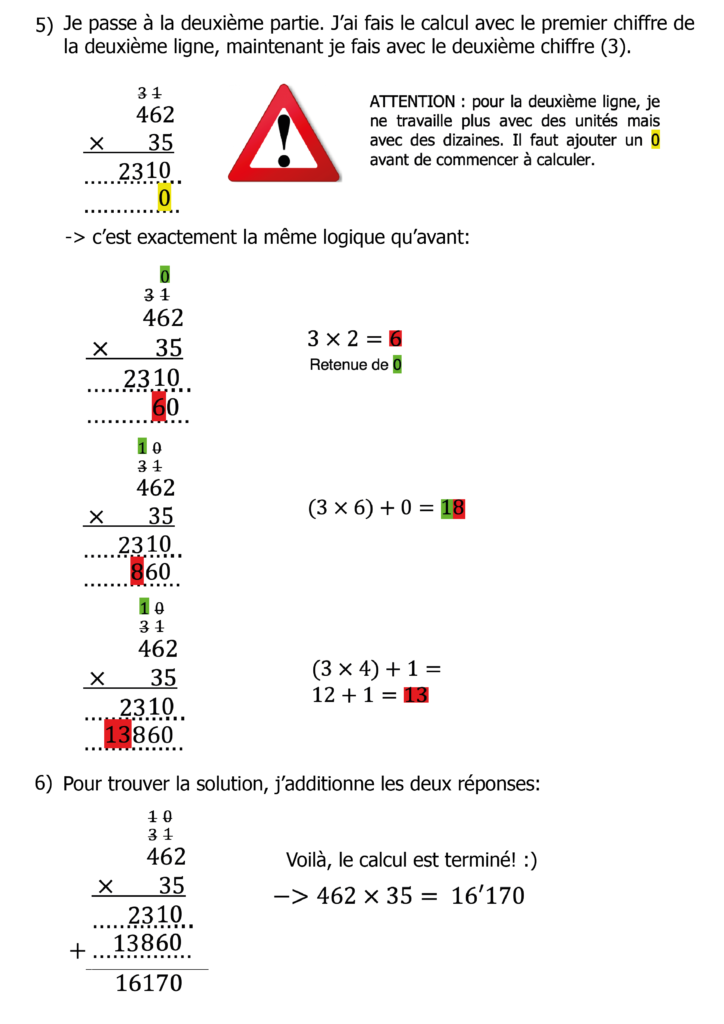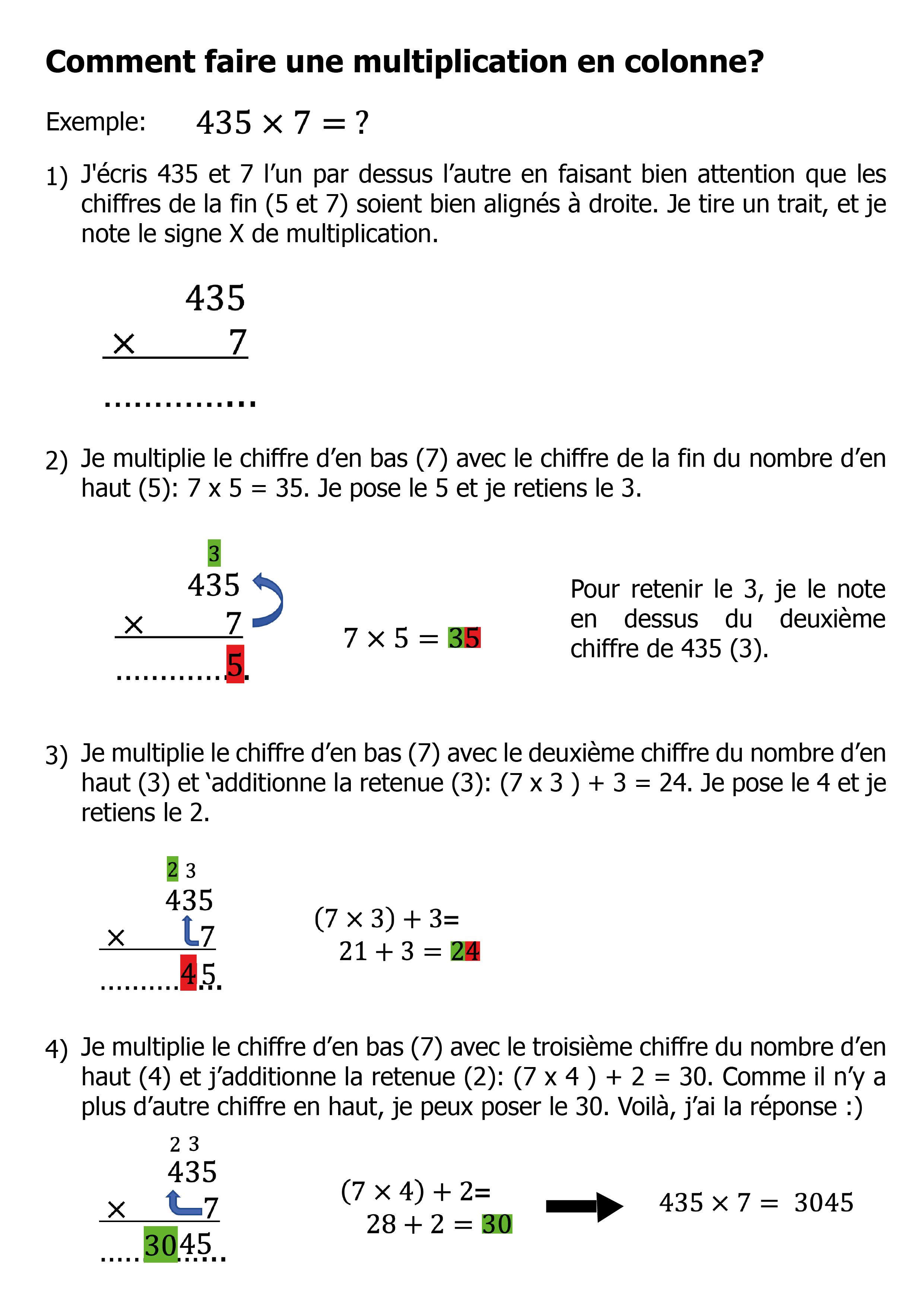 Cette semaine, vous allez travailler la multiplication en colonne.