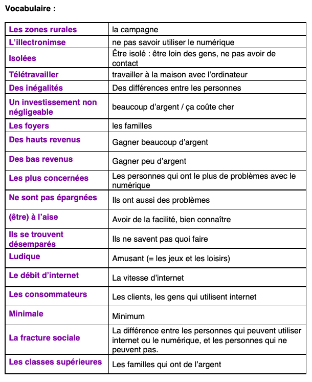 Cliquez sur la flĂšche bleue Ă droite du texte pour regarder le vocabulaire (les mots en violet).