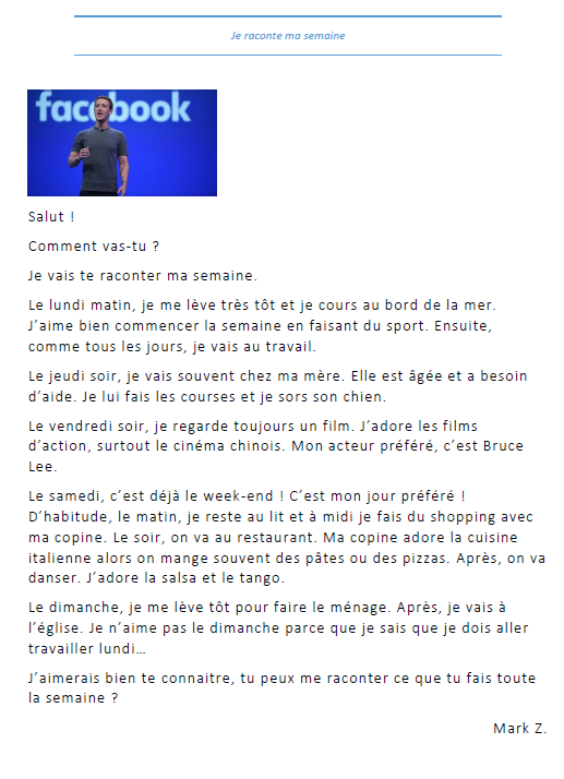 Habitudes au présent: La semaine de Mark Zuckerberg