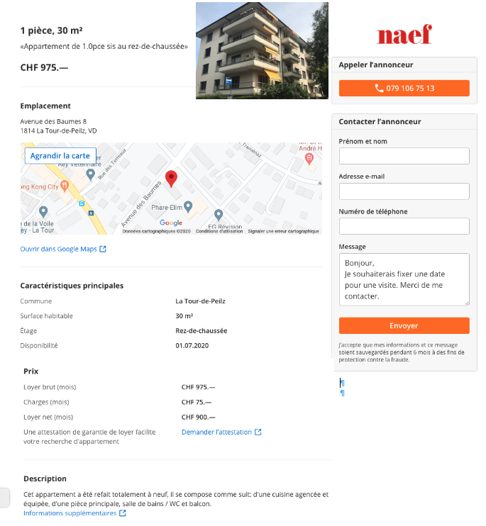 Observez et lisez la petite-annonce immobiliĂšre.