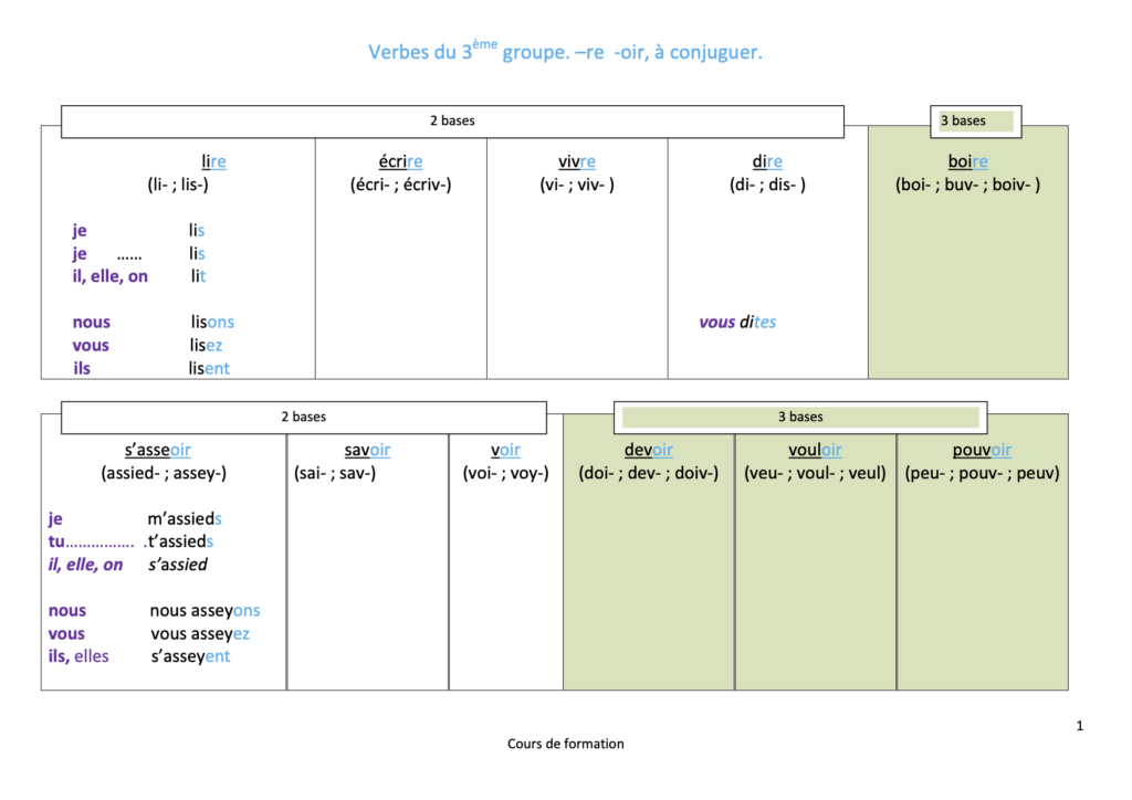 Lisez bien les explications sur la conjugaison des verbes du troisiĂšme groupe en -ir.